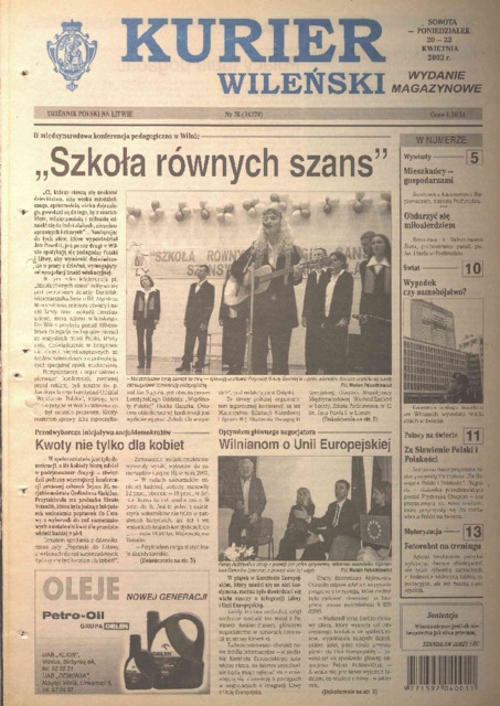 Kurier Wileński 2002 'No. 76 (14374) sobota-poniedziałek 20-22 kwietnia
