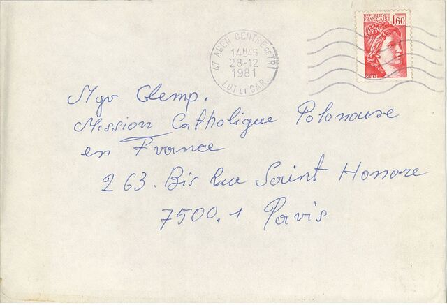 Kolekcja: | Archiwa > Francuskie listy do księdza kardynała Józefa Glempa z okresu stanu wojennego > 36-11574-11696 |