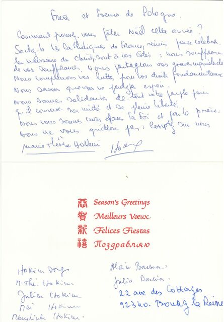 Kolekcja: | Archiwa > Francuskie listy do księdza kardynała Józefa Glempa z okresu stanu wojennego > 36-11574-11696 |