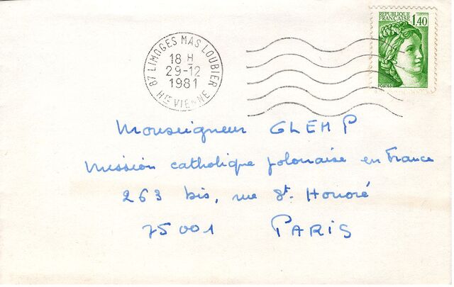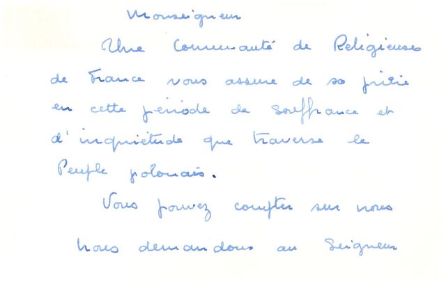 Kolekcja: | Archiwa > Francuskie listy do księdza kardynała Józefa Glempa z okresu stanu wojennego > 36-11574-11696 |