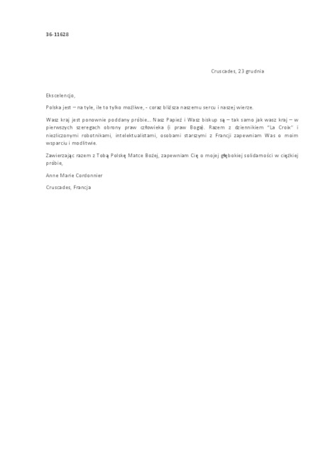 Kolekcja: | Archiwa > Francuskie listy do księdza kardynała Józefa Glempa z okresu stanu wojennego > 36-11574-11696 |