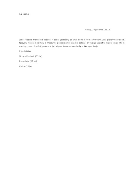 Kolekcja: | Archiwa > Francuskie listy do księdza kardynała Józefa Glempa z okresu stanu wojennego > 36-11574-11696 |