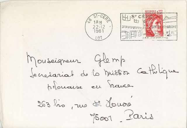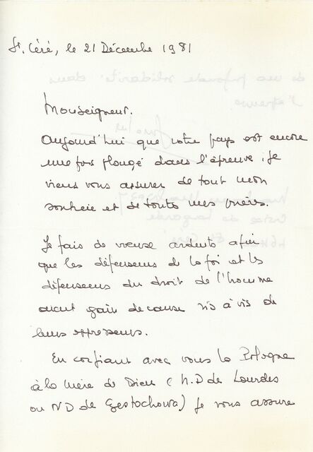 Kolekcja: | Archiwa > Francuskie listy do księdza kardynała Józefa Glempa z okresu stanu wojennego > 36-11574-11696 |