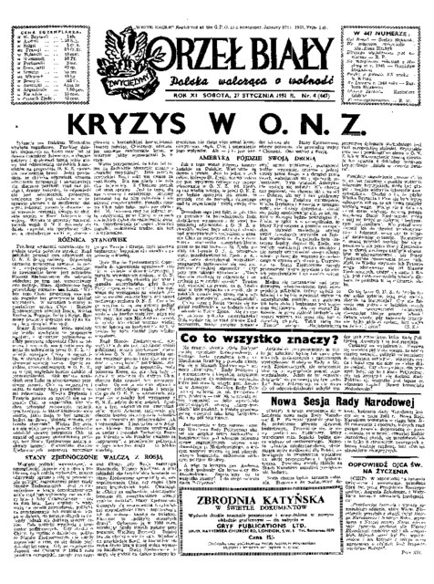 Orzeł Biały = (White Eagle): Polska walcząca o wolność, 1951 No. '4 (27 stycznia)