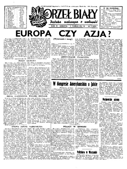 Orzeł Biały = (White Eagle): Polska walcząca o wolność, 1951 No. '9 (3 marca)