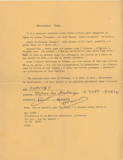 Kolekcja: | Archiwa > Francuskie listy do księdza kardynała Józefa Glempa z okresu stanu wojennego > 36-11574-11696 |