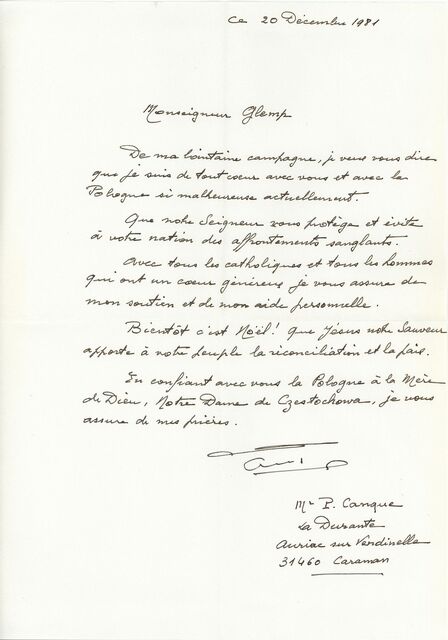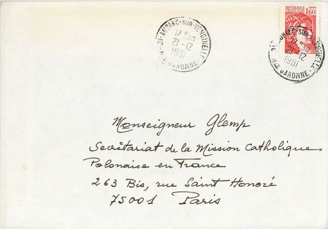 Kolekcja: | Archiwa > Francuskie listy do księdza kardynała Józefa Glempa z okresu stanu wojennego > 36-11574-11696 |