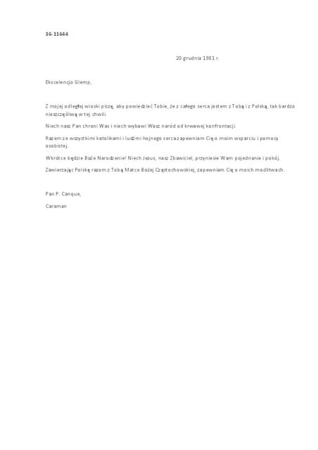 Kolekcja: | Archiwa > Francuskie listy do księdza kardynała Józefa Glempa z okresu stanu wojennego > 36-11574-11696 |