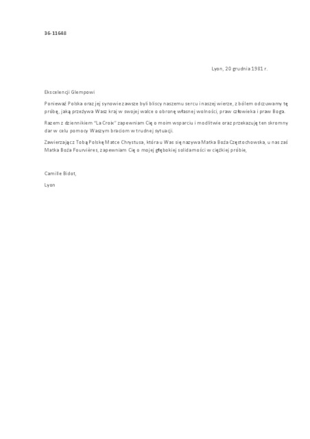 Kolekcja: | Archiwa > Francuskie listy do księdza kardynała Józefa Glempa z okresu stanu wojennego > 36-11574-11696 |