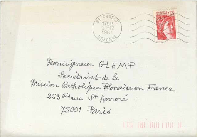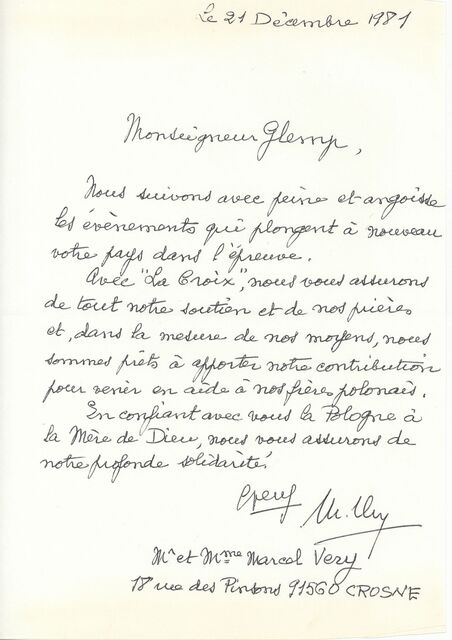 Kolekcja: | Archiwa > Francuskie listy do księdza kardynała Józefa Glempa z okresu stanu wojennego > 36-11574-11696 |