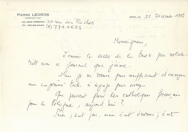 Kolekcja: | Archiwa > Francuskie listy do księdza kardynała Józefa Glempa z okresu stanu wojennego > 36-11574-11696 |