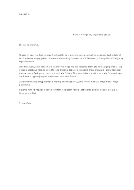 Kolekcja: | Archiwa > Francuskie listy do księdza kardynała Józefa Glempa z okresu stanu wojennego > 36-11574-11696 |
