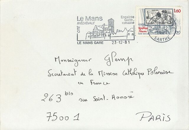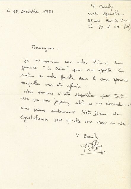 Kolekcja: | Archiwa > Francuskie listy do księdza kardynała Józefa Glempa z okresu stanu wojennego > 36-11574-11696 |