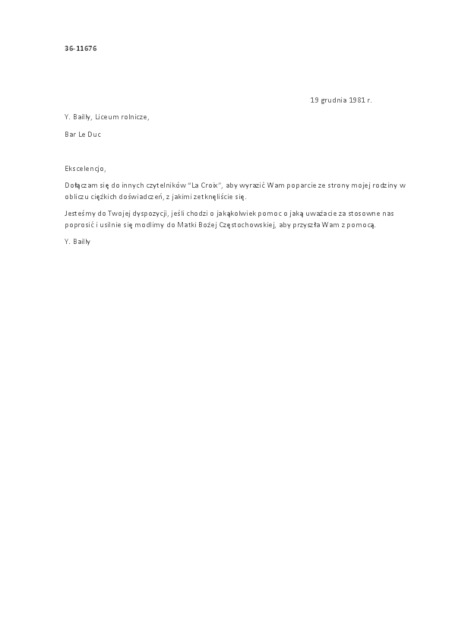 Kolekcja: | Archiwa > Francuskie listy do księdza kardynała Józefa Glempa z okresu stanu wojennego > 36-11574-11696 |