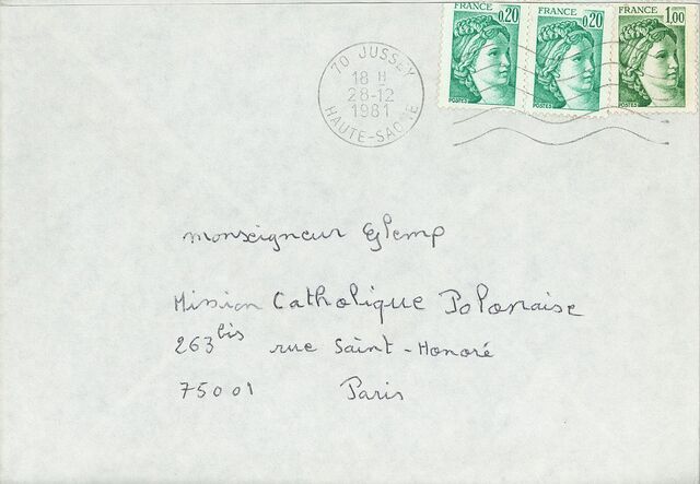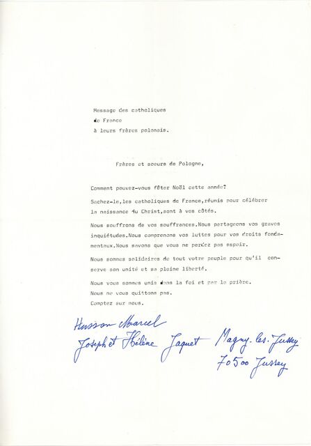 Kolekcja: Archiwa > Francuskie listy do księdza kardynała Józefa Glempa z okresu stanu wojennego > 36-11574-11696