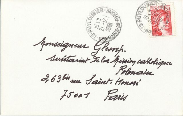 Kolekcja: Archiwa > Francuskie listy do księdza kardynała Józefa Glempa z okresu stanu wojennego > 36-11574-11696