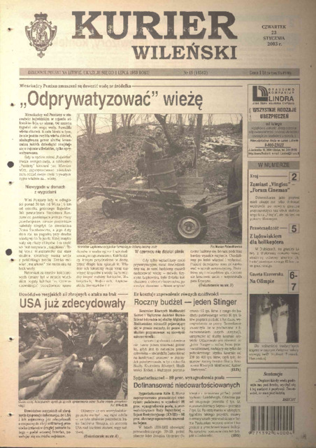 Kurier Wileński 2003 'No. 15 (14562) czwartek 23 stycznia