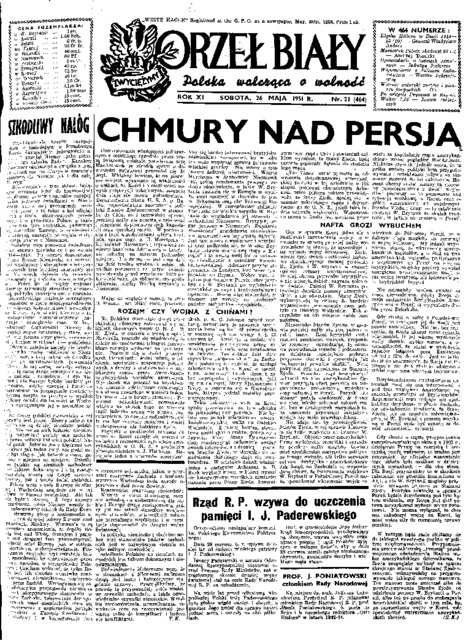 Orzeł Biały = (White Eagle): Polska walcząca o wolność, 1951 No. 21 (26 maja)