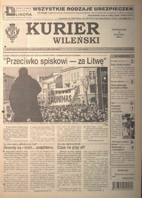 Kurier Wileński 2003 'No. 72 (14619) poniedziałek 14 kwietnia