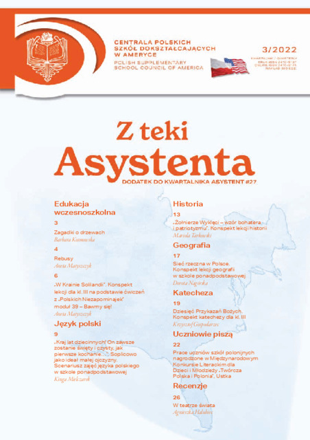 Opis: | "Z Teki Asystenta" 3/2022. Dodatek do kwartalnia "Asystent" wydawanego w Nowym Jorku przez Centralę Polskich Szkół Dokształcających w Ameryce = Polish Supplementary School Council of America. Redaktor: Renata Jujka. ISSN : 2470-6167. |