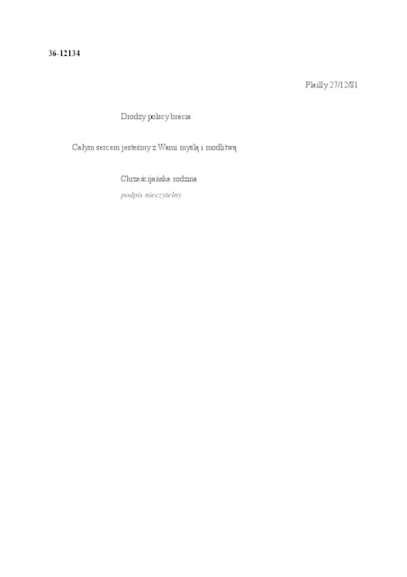 Kolekcja: | Archiwa > Francuskie listy do księdza kardynała Józefa Glempa z okresu stanu wojennego > 36-12126-12263 |
