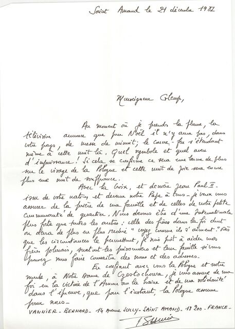 Kolekcja: | Archiwa > Francuskie listy do księdza kardynała Józefa Glempa z okresu stanu wojennego > 36-12126-12263 |