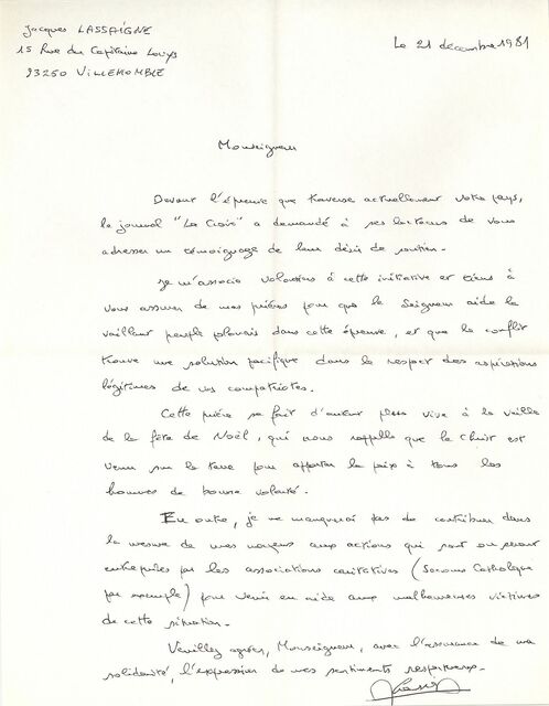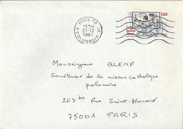 Kolekcja: Archiwa > Francuskie listy do księdza kardynała Józefa Glempa z okresu stanu wojennego > 36-12126-12263