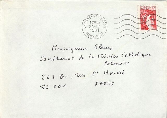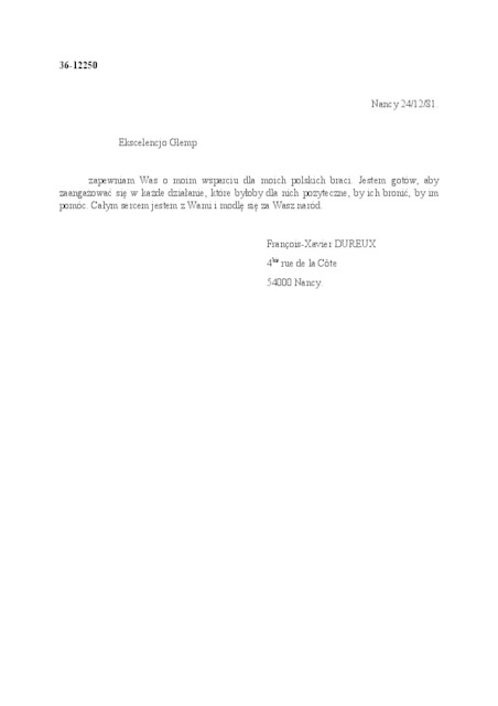 Kolekcja: Archiwa > Francuskie listy do księdza kardynała Józefa Glempa z okresu stanu wojennego > 36-12126-12263