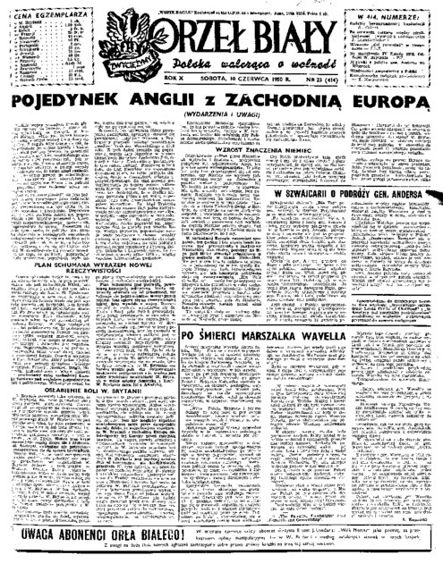 Orzeł Biały = (White Eagle): Polska walcząca o wolność, 1950 No. 23 (10 czerwca)
