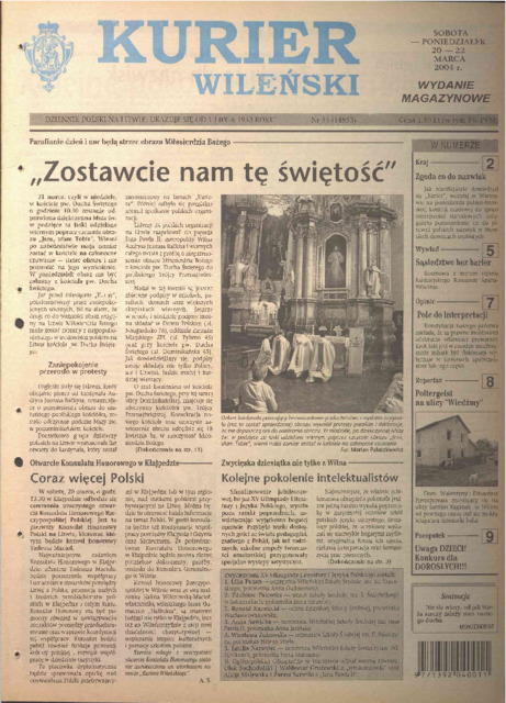 Kurier Wileński 2004 'No. 55 (14853) sobota-poniedziałek 20-22 marca