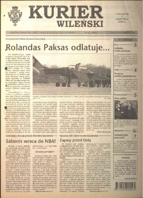 Kurier Wileński 2004 'No. 63 (14861) czwartek 1 kwietnia