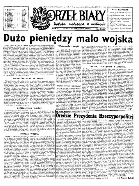 Orzeł Biały = (White Eagle): Polska walcząca o wolność, 1950 No. 36 (9 września)