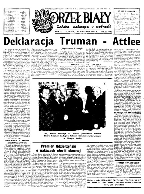 Orzeł Biały = (White Eagle): Polska walcząca o wolność, 1950 No. 50 (16 grudnia)