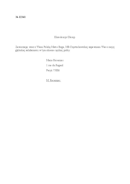 Kolekcja: Archiwa > Francuskie listy do księdza kardynała Józefa Glempa z okresu stanu wojennego > 36-12264-12392