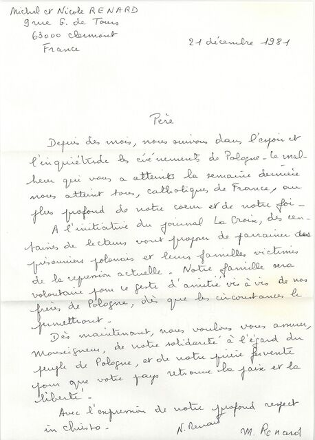 Kolekcja: Archiwa > Francuskie listy do księdza kardynała Józefa Glempa z okresu stanu wojennego > 36-12393-12514