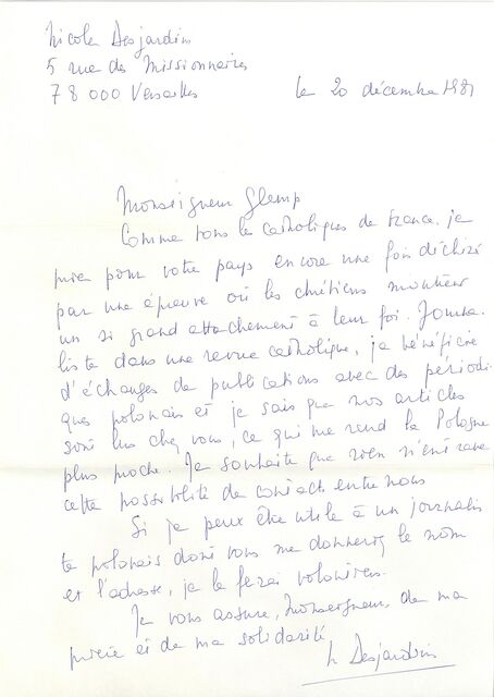 Kolekcja: Archiwa > Francuskie listy do księdza kardynała Józefa Glempa z okresu stanu wojennego > 36-12393-12514