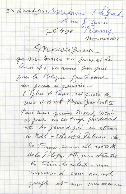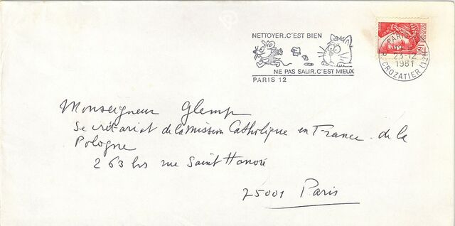 Kolekcja: | Archiwa > Francuskie listy do księdza kardynała Józefa Glempa z okresu stanu wojennego > 36-12393-12514 |