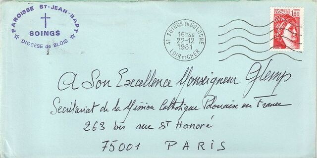 Kolekcja: | Archiwa > Francuskie listy do księdza kardynała Józefa Glempa z okresu stanu wojennego > 36-12393-12514 |