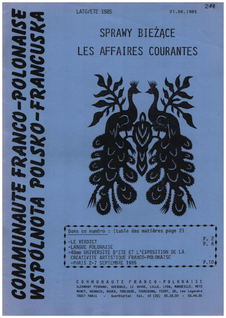 Les Affaires Courantes : Communaute Franco-Polonaise = Wspólnota Polsko-Francuska 1985 lato/ete