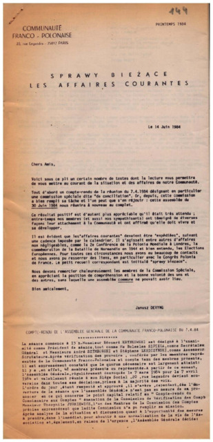 Les Affaires Courantes : Communaute Franco-Polonaise = Wspólnota Polsko-Francuska 1984