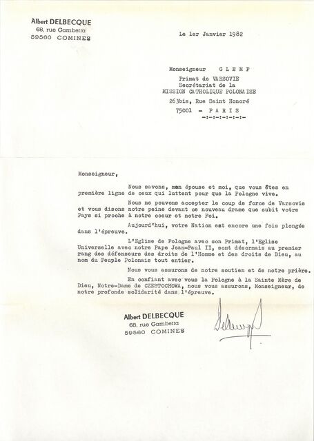 Kolekcja: | Archiwa > Francuskie listy do księdza kardynała Józefa Glempa z okresu stanu wojennego > 36-12393-12514 |