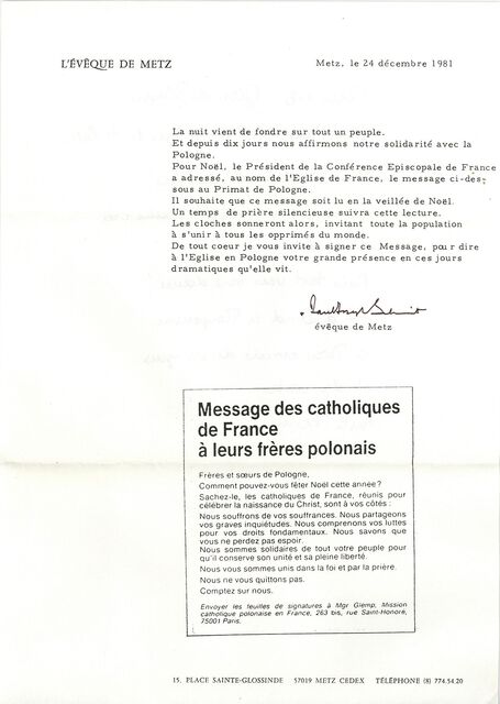 Kolekcja: | Archiwa > Francuskie listy do księdza kardynała Józefa Glempa z okresu stanu wojennego > 36-12515-12631 |