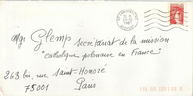 Kolekcja: | Archiwa > Francuskie listy do księdza kardynała Józefa Glempa z okresu stanu wojennego > 36-12515-12631 |
