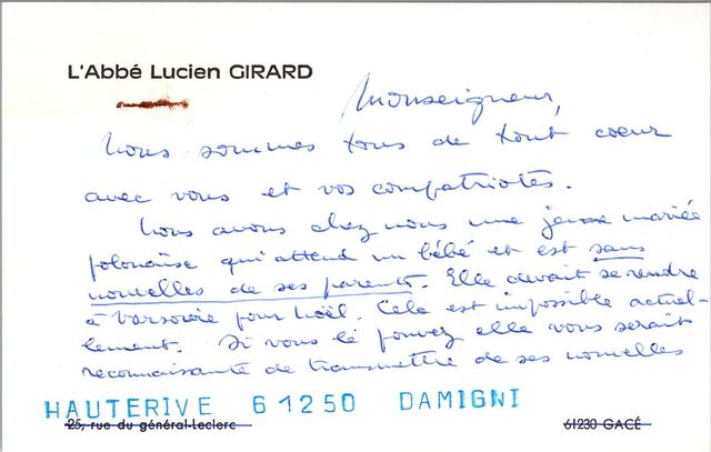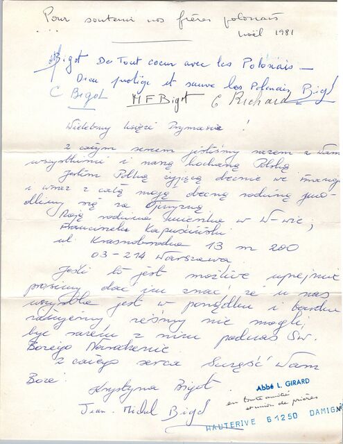 Kolekcja: | Archiwa > Francuskie listy do księdza kardynała Józefa Glempa z okresu stanu wojennego > 36-12515-12631 |