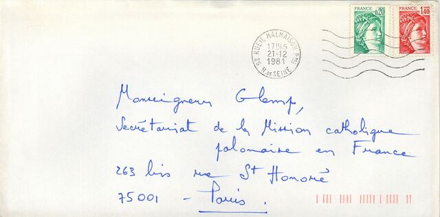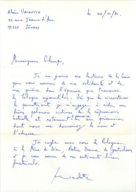 Kolekcja: Archiwa > Francuskie listy do księdza kardynała Józefa Glempa z okresu stanu wojennego > 36-12515-12631