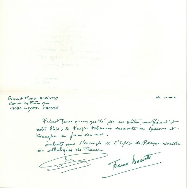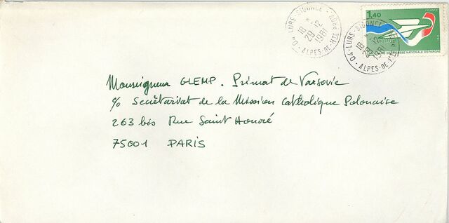 Kolekcja: | Archiwa > Francuskie listy do księdza kardynała Józefa Glempa z okresu stanu wojennego > 36-12515-12631 |