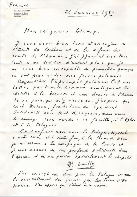 Kolekcja: Archiwa > Francuskie listy do księdza kardynała Józefa Glempa z okresu stanu wojennego > 36-12515-12631