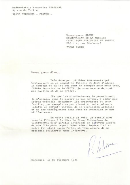 Kolekcja: Archiwa > Francuskie listy do księdza kardynała Józefa Glempa z okresu stanu wojennego > 36-12515-12631