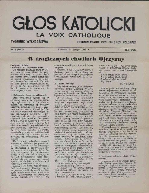 Głos Katolicki = La Voix Catholique. R. 24 : 'No. 8 (28 lutego 1982)