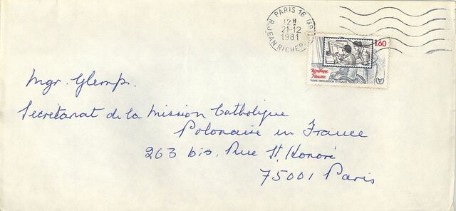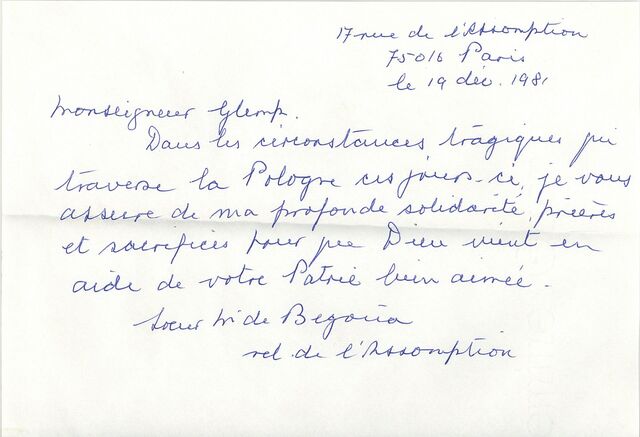 Kolekcja: Archiwa > Francuskie listy do księdza kardynała Józefa Glempa z okresu stanu wojennego > 36-12632-12769